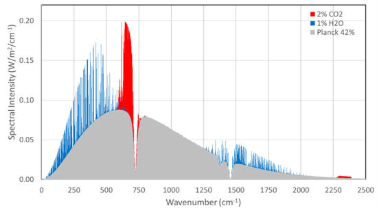 power emitted by the surface and partially absorbed by the warmer gas layer, is lower than
